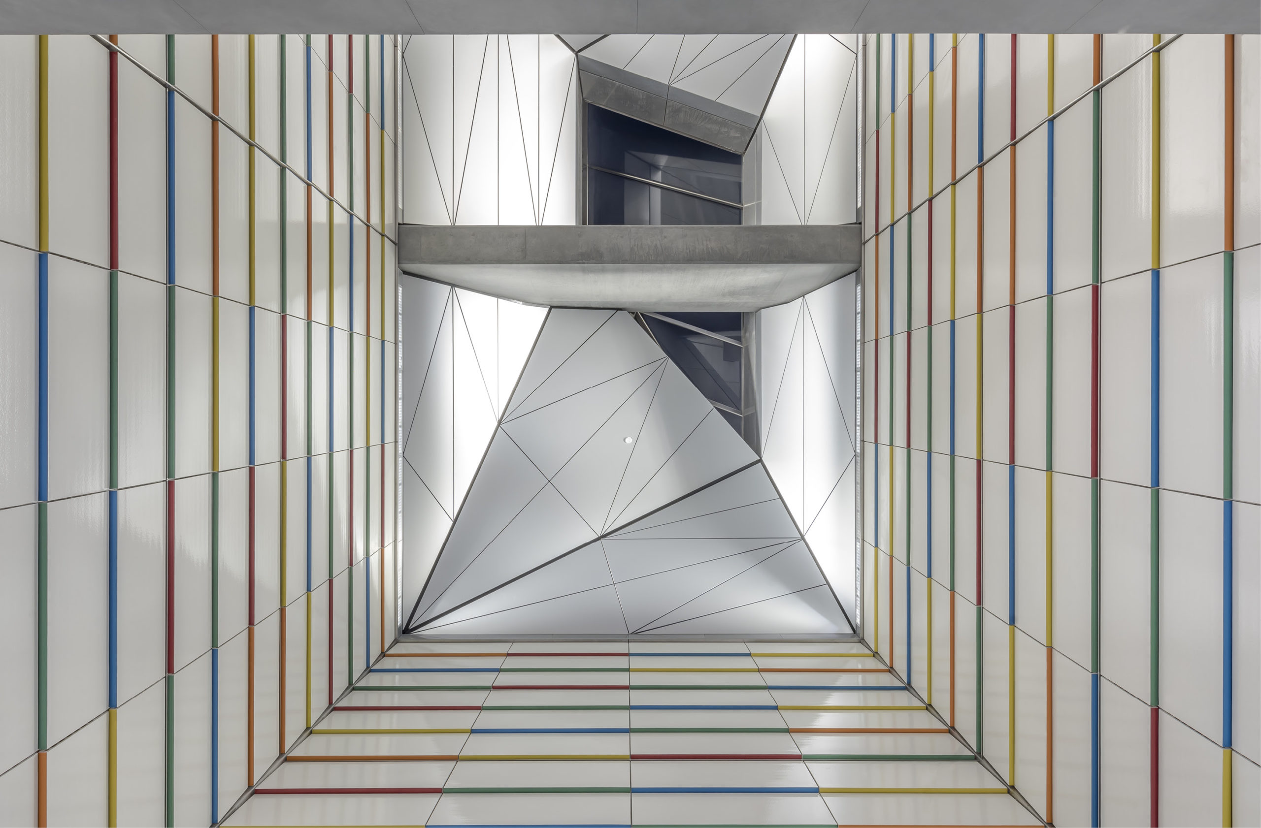 Für die Fassadengestaltung von sieben der 17 neuen U-Bahnhöfe in Kopenhagen kamen Keramikplatten von MOEDING zum Einsatz. Bei der Station Vibenshus Runddel kamen Schindelplatten mit einer besonderen Glasur zum Einsatz. Frontal sieht der Betrachter eine Wand mit weißen Paneelen, je weiter man nach unten fährt, erkennt man die Vielfalt dieser Fassade. Mit einem neu entwickelten Glasurverfahren wurden nur die Unterseiten der Ziegelplatten mit 5 verschiedenen Farben glasiert, was für einen einzigartigen Effekt sorgt.